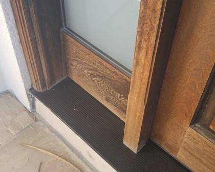The short answer is yes, and no. Next to teak, oak is one of the hardest woods and is ideal for exterior doors.  But if the doorway has been neglected to the point that all the finish has worn off in places and it has gone grey or worse we have to sand it back until we get to ‘new’ wood.