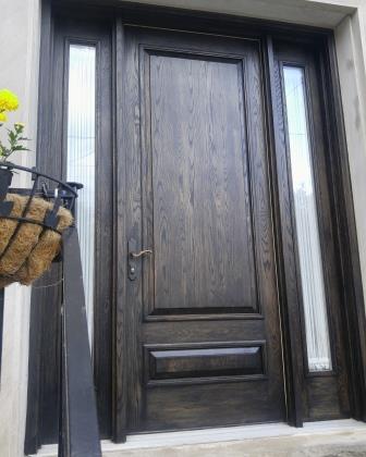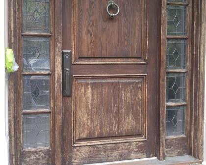 The other reason we strip exterior doors is that by the time most people call us, some areas are worn down to bare wood already, so sanding needs to be done to remove weathered wood.  The other reason for stripping doors is that the clear coatings applied by many doors manufactured in Canada are very hard and once they fail, they have to be removed completely.