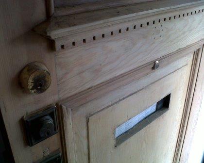 We start by stripping the door down to bare wood.  That is important for exterior doors because they wear unevenly depending on exposure to sunlight and weather and we need to have the whole surface at the same level before we can begin applying a new finish. (Some pictures shown here are doors we didn’t take down to bare wood but generally, they are the exception.)