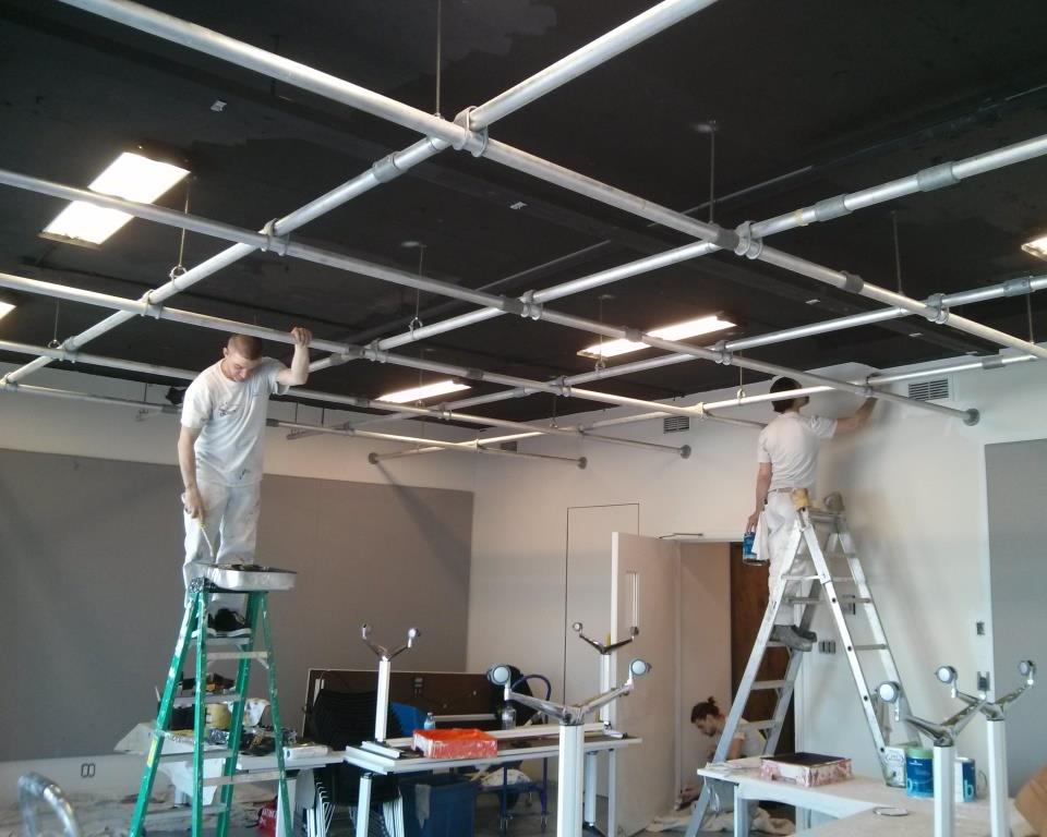 The commercial painting side of the business is diverse and we cover specific areas. Offices, meeting rooms and class rooms are all places where lower ceiling heights enable us to paint with a standard brush and roller technique.
