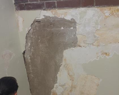 We have to remove all the loose plaster until we get back to the places where the plaster is still attached to the lath and then start over.